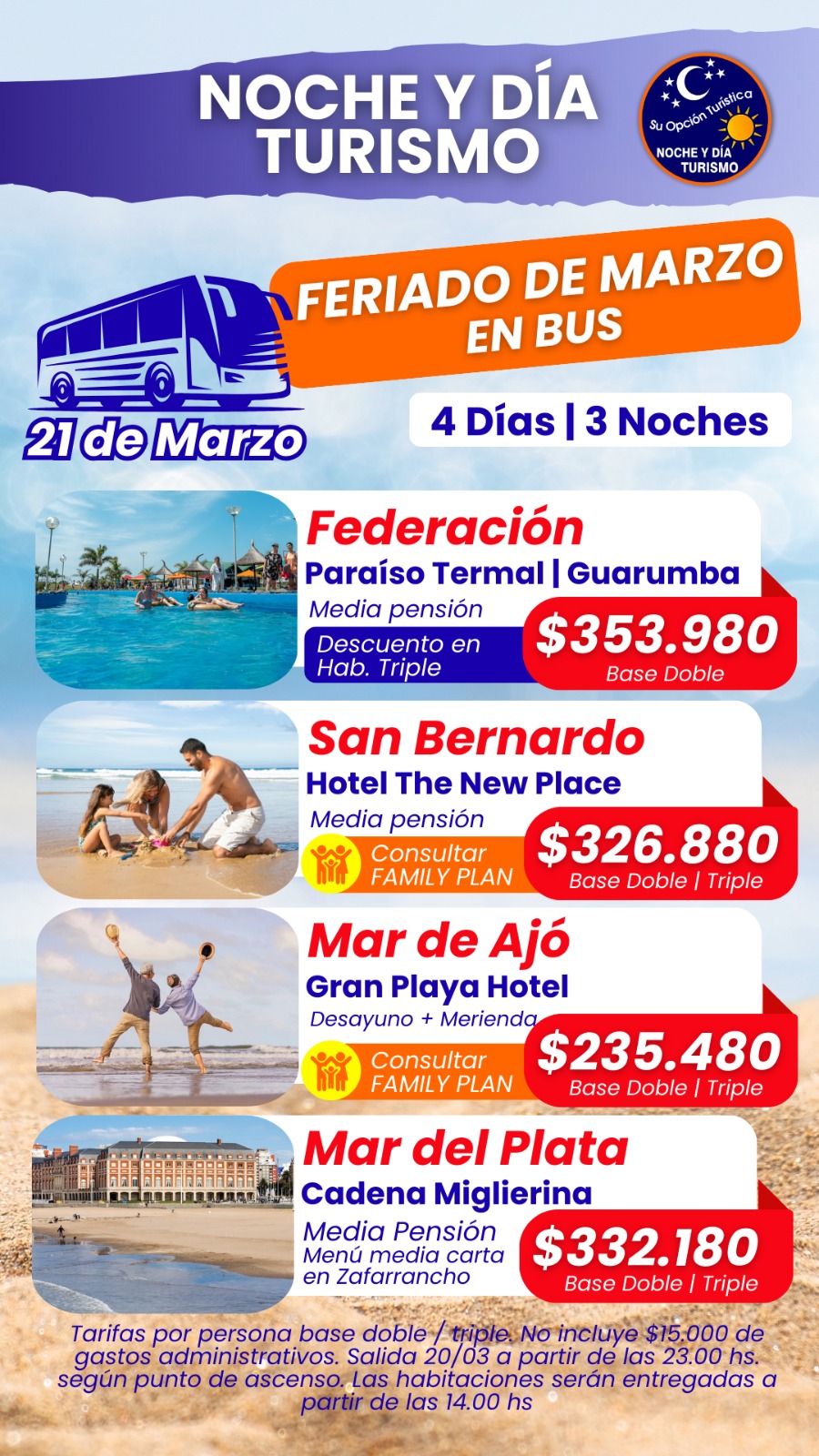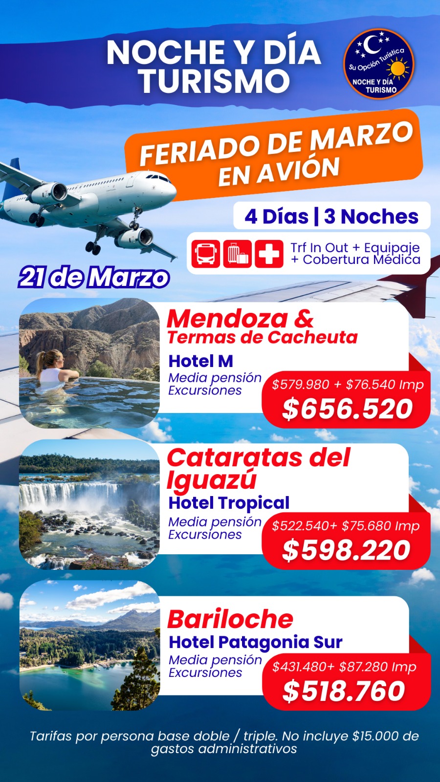 FERIADO DE MARZO EN AVIÓN O BUS! Solo si estás interesado en estas ofertas de turismo y queres conocer más detalles, comunícate con Romina WhatsApp +54 9 11 3025-2040, de la agencia NocheyDia.