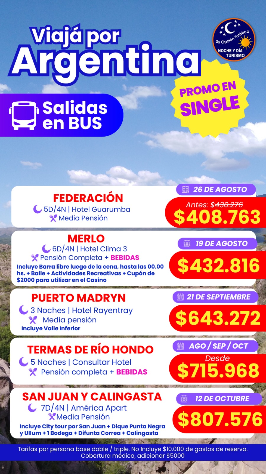 ÚLTIMAS PROPUESTAS! Por la opción que te interese comunícate con Romina WhatsApp +54 9 11 3025-2040, de la agencia NocheyDia.