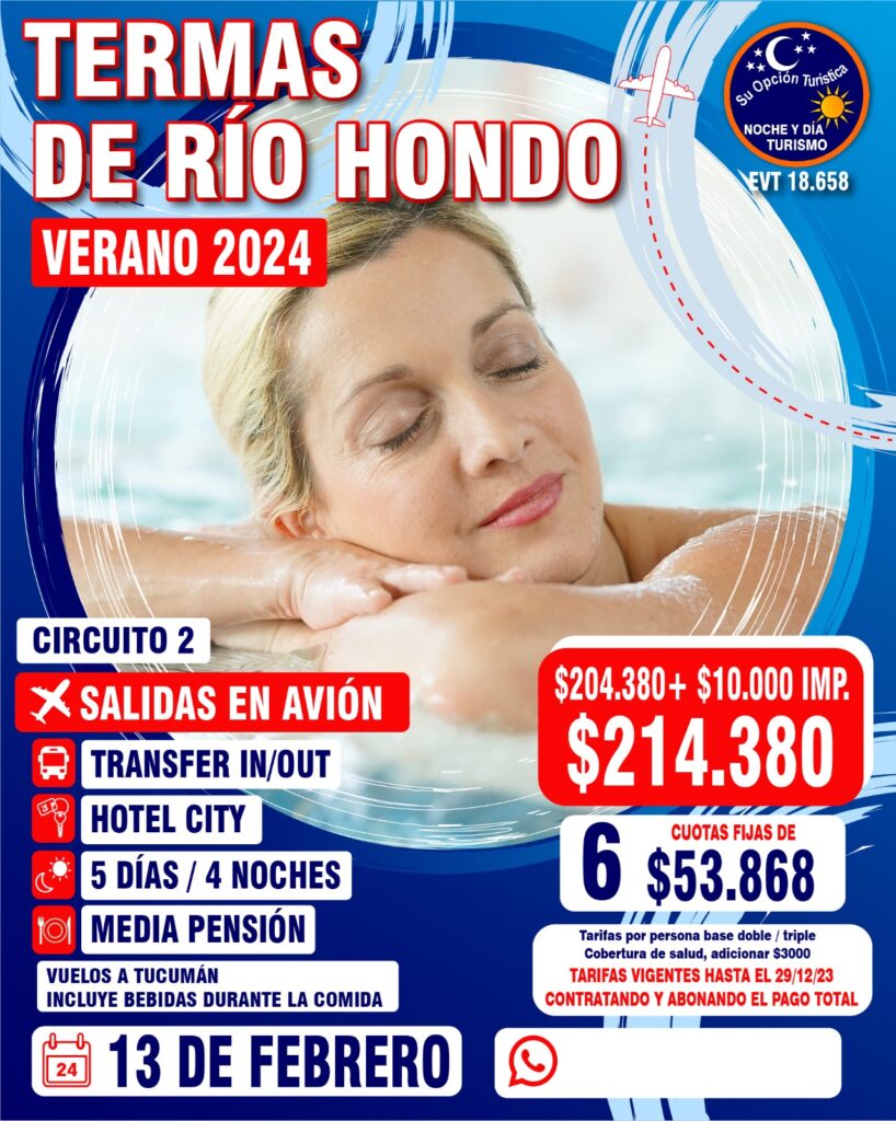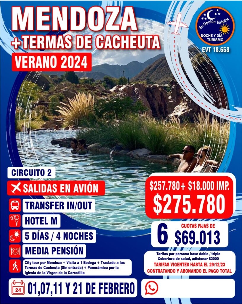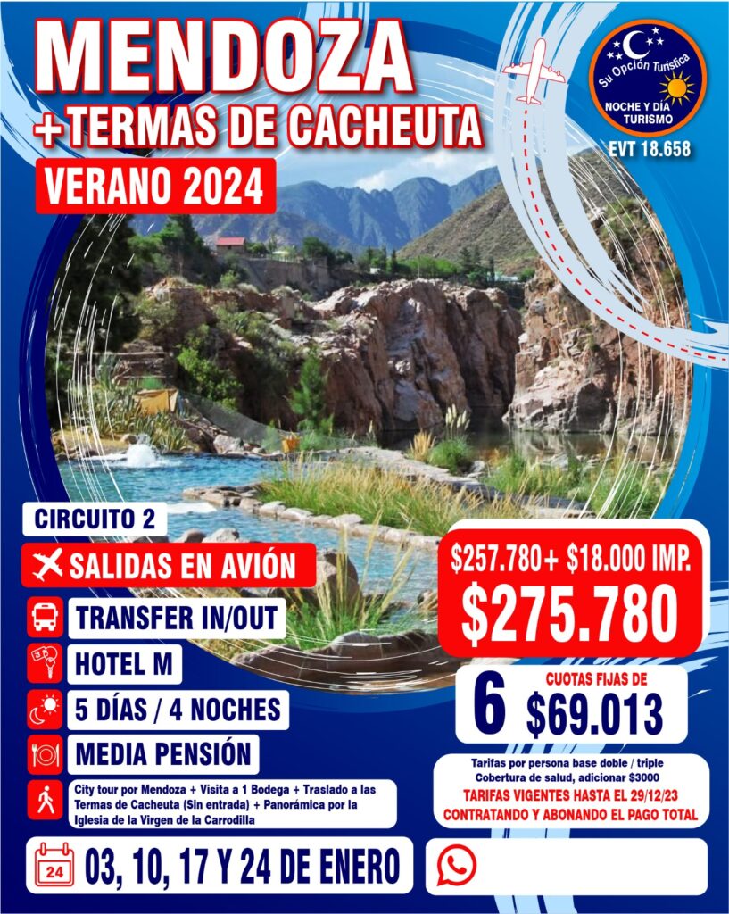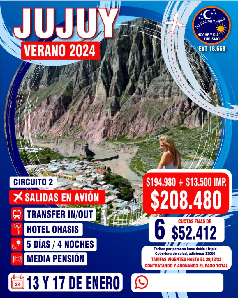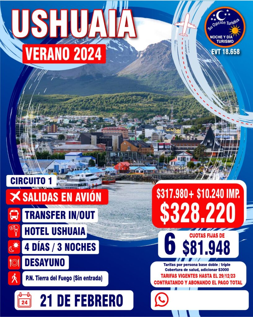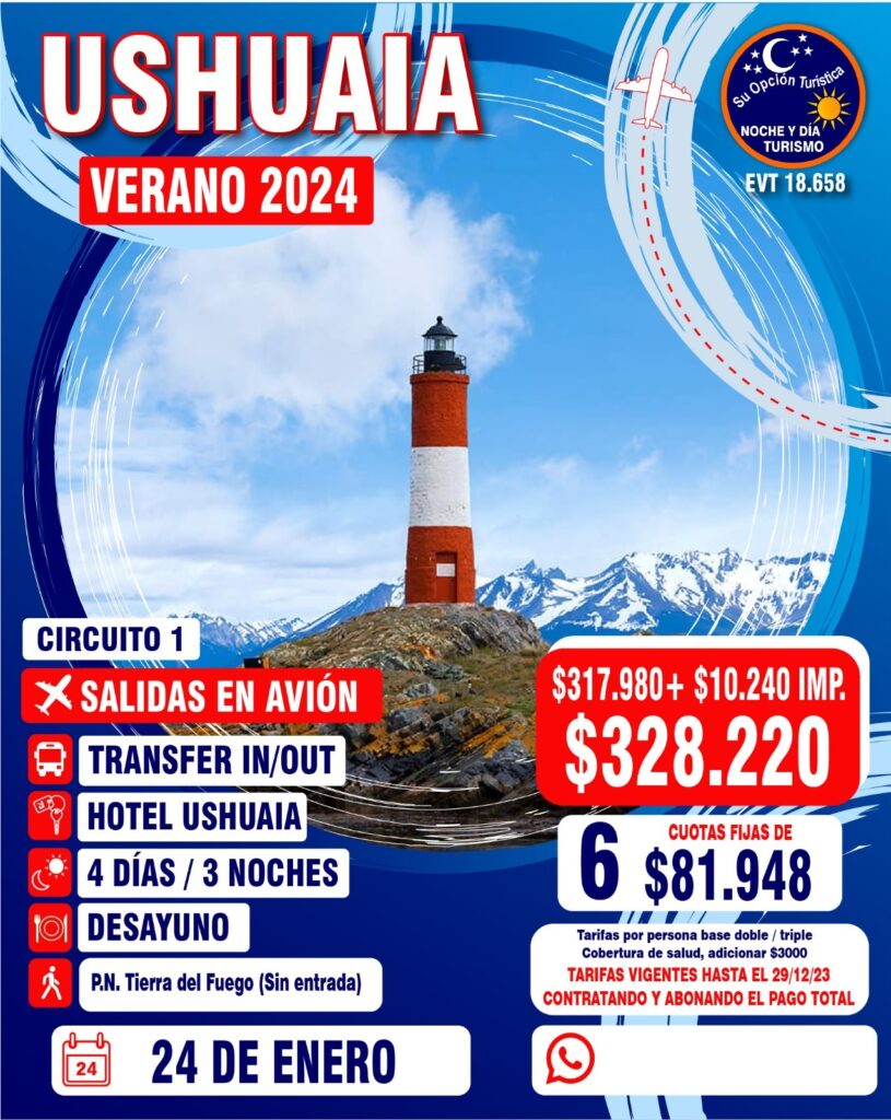 VERANO 2024 Circuitos por Argentina Para coordinar todo lo relacionado a los paquetes de excursiones, comunícate con la agencia : Noche y Día WApp (Romina)5491130252040web https://www.nocheydiaturismo.com/Teléfono : (+54) 11 4432 8675E-mail : consultas@nocheydiaturismo.com