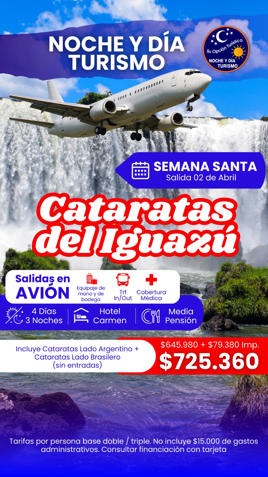 VIAJAMOS EN SEMANA SANTA Solo si estás interesado en estas ofertas de turismo y queres conocer más detalles, comunícate con Romina WhatsApp +54 9 11 3025-2040, de la agencia NocheyDia.